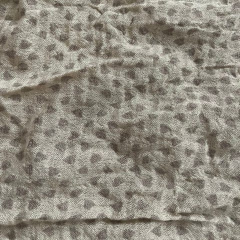 Beige skjerf med blå elefanter. Her er det brettet.