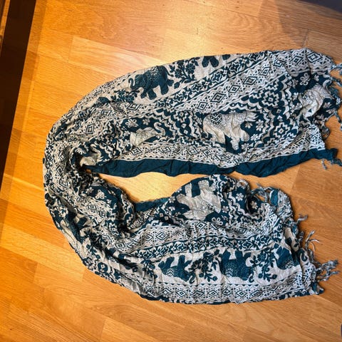 Tynt skjerf med fine elefanter til pynt. Kan sendes for 38 kroner(for en) som brev, eller for 73 kroner med sporing, du velger. Kan hentes. Vipps.