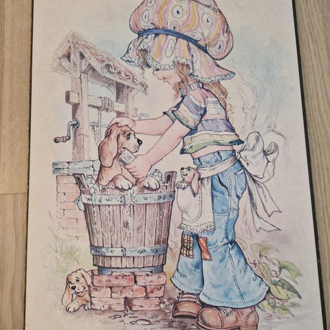 Innrammet men uten glass, noe vannmerker og noe bruksmerker men i god vintage stand. 21,5×40,5 cm