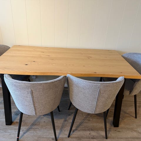 Selger 7 stk, spisestoler som er pent brukt. De er i sort metall, naturfarget sete. Nypris kr. 2399, pr stk, selges nå for 750 pr stk. Ved kjøp av alle kr. 5000,-. Kjøpt for ca. halvannet år siden.