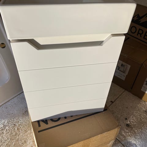 Kommode fra Linn Bad i hvit høyglans farge med tre skuffer. Skuffene har metallhåndtak. Passer til oppbevaring i ulike rom.