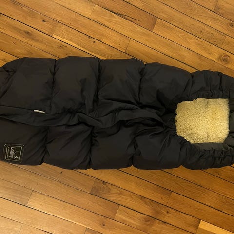 Muffe eller håndvarmer til barnevogn når man triller ute i kulda. Festes rundt banrevognhåndtaket og holder hendene varme mens man triller.