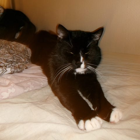 Jeg har en annen katt som er en god venn av Gilbert, og jeg står litt i et dilemma om de egentlig har det best sammen eller hver for seg. Den andre katten har ingen av de samme utfordringene, men de har et sterkt bånd.