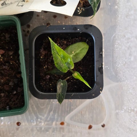 Selger stiklinger av Scindapsus Pictus Silvery Ann. Denne planten har nydelige grønne blader med masse sølv.