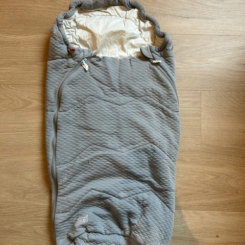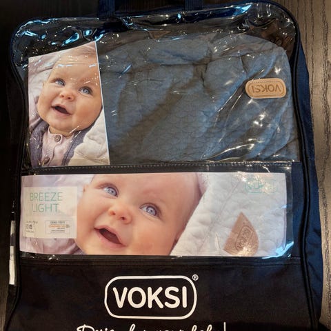 Koselig Breeze Light vognpose fra Voksi med en avtagbar, fôret front. Den har et sklisikkert materiale på baksiden og praktiske åpninger med quick-release glidelåser på sidene. Vognposen er universell og passer de fleste barnevognene på markedet.