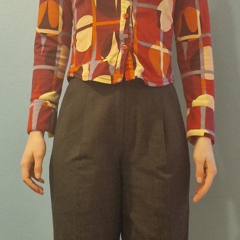 Jake i størrelse L -passer M også for kvinner. Jakken har et flerfarget mønster og er laget av bomull med innslag av viskose. Produktet er produsert i Italia. Kan sendes hvis kjøper betaler porto