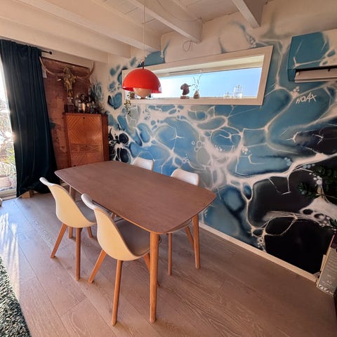 Flott design og detalijer på stoler og bordet. Tåler masse !