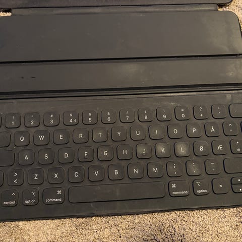 Tastatur til iPad Air eller Pro i størrelsen 11 tommer. Magnetisk feste til iPad. I åpen stilling kan iPaden stilles inn i to vinkler. Kan lukkes helt for beskyttelse av iPad når den ikke brukes. Bruksmerker.