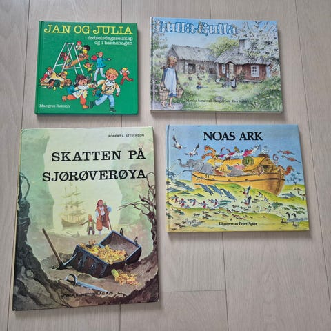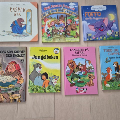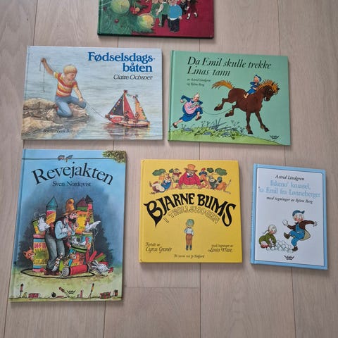 Selger gode barnebøker som er like fine som nye. Der det er omtale av bok på siste side, følger bilde av dette på bildet etter forsiden.