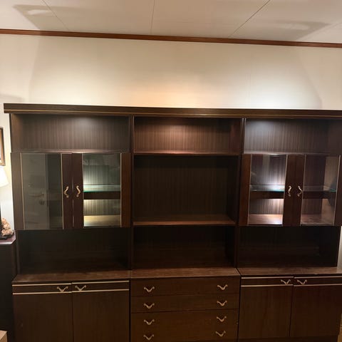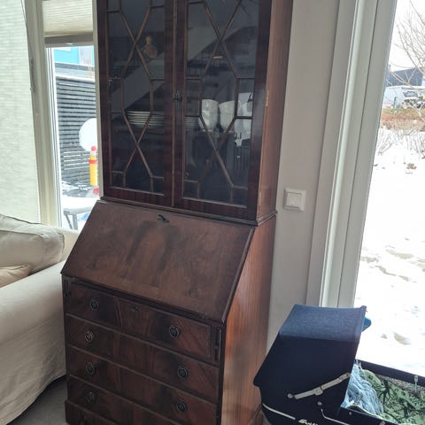 Mål kommode med speil: h 160cm, b 130 cm, d 45 cm. H kommode u/speil 56 cm. Rundt svimerke i overflate.