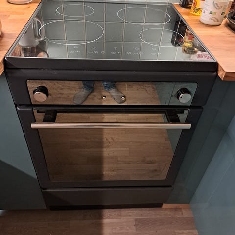 Komfyr med smeltet/svidd ledning i ovnsrommet. Se bilde.