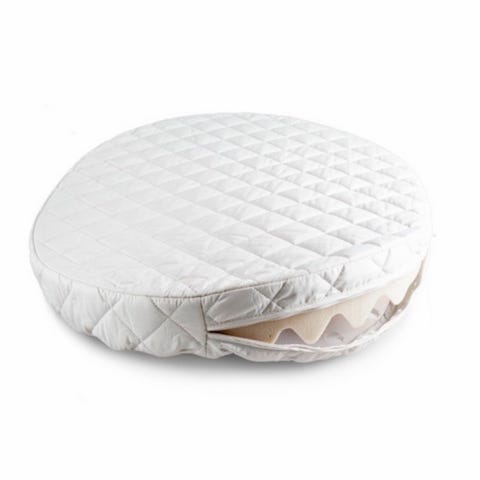 Madrassen kan ikke vaskes. For å beskytte mot gulp og lekkasjer ber vi om at det brukes teppe/klut i bunnen av vuggen. Vi har selv brukt babynest i vuggen, noe som anbefales for å holde den ekstra ren og trygg.