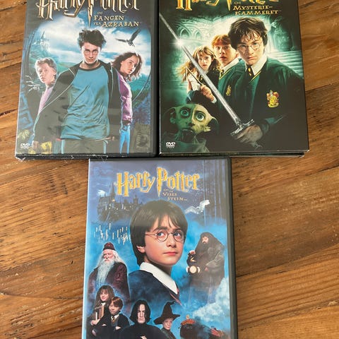 Harry Potter DVD-filmer inkludert titlene: Harry Potter og mysteriekammeret,