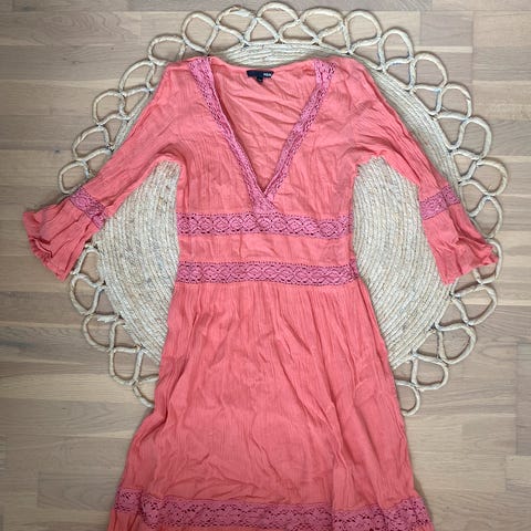 Vintagekjole fra Victoria selges. Står størrelse 42, men er mer som en S/M. Nydelige volanger og paljetter! Kjolen har underskjørt. 💫🌸