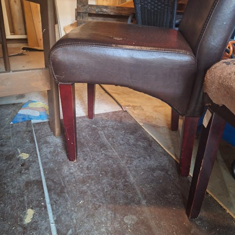 To stoler i rotting, fungerer både inne og ute. Selv brukt de med skinn inne. Må hentes. Samlet pris 300,-