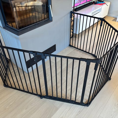 Selger grind merke my gate til 300kr. Selve grinden er 85 cm lang men har ca 20cm til god med justering. 73 cm høyt. Fester følger med.