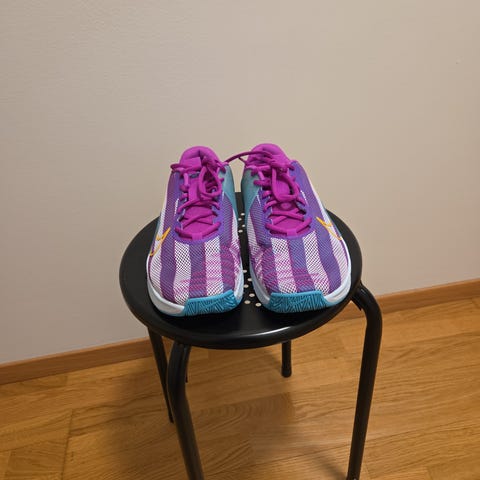 Fitnesssko i størrelse 43 med hvit og blå farge. Egnet for bruk innen fitnessaktiviteter.
