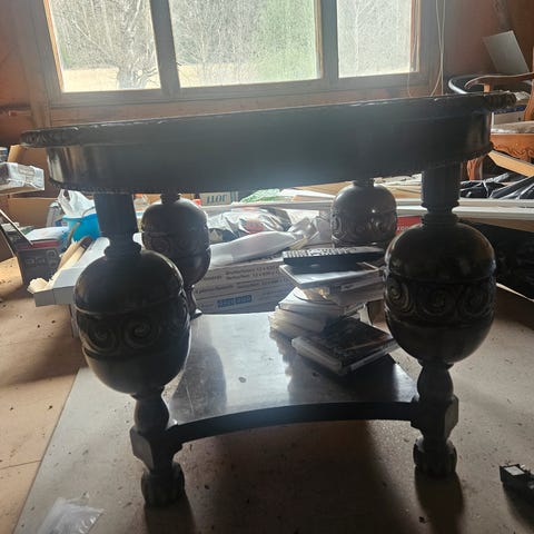 ANTIKT BAROKK BORD, EIK OG LÆR., SALONGBORD, SOFABORD, SIDEBORD, RØKEBORD.