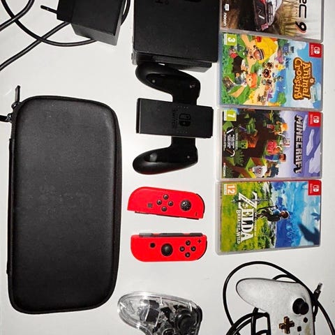 Selger meget pen Nintendo Switch med masse utstyr Det er ikke noen riper i skjermen Det er montert skjermbeskytter på den Mye av utstyret er ikke brukt