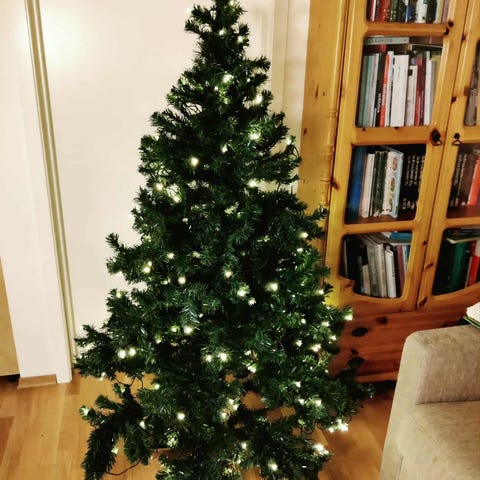 Helt nytt juletre, kun brukt en gang i julen. Er festet juletrelys på med stikkontakt. Ca. 140cm.