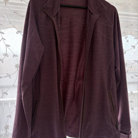 H&M sport treningsjakke. Det er en genser med zip i beige.