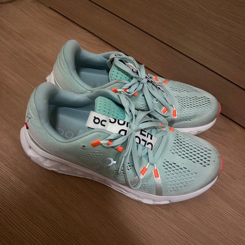 Asics sneakers joggesko i størrelse 40. Skoene har en lys farge med detaljer i mintgrønn. Materialet består av mesh og syntetiske elementer, som gir god ventilasjon og støtte. Egnet for daglig bruk og lett trening.