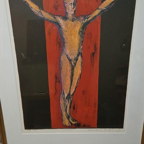 Sjeldent tresnitt/litografi av Kai Fjell.