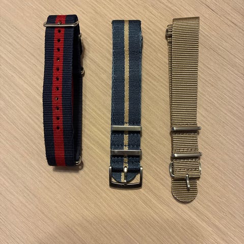 Helt nye klokkeremmer - en i svart og en i oliven grønn. Selges samlet for kr 150 eller hver for seg for kr 99.
