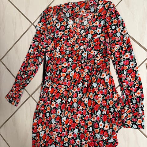 Pent og lite brukt. Knyting i halsen men går fint å ha den åpen. Strikk nederst ved ermene.