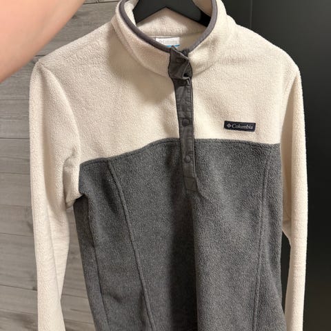 Mørkeblå fleecegenser fra Colombia. Størrelse L, men passer fint en medium. Røde detaljer, to lommer foran.
