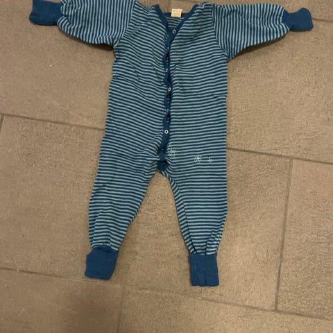 Pysj i ullfrotté fra Nøstebarn, str 68 men brukt en del så den ble litt tovet, jeg tenker at den kan brukes fra 2-3 måneder, hvis jeg husker riktig.
