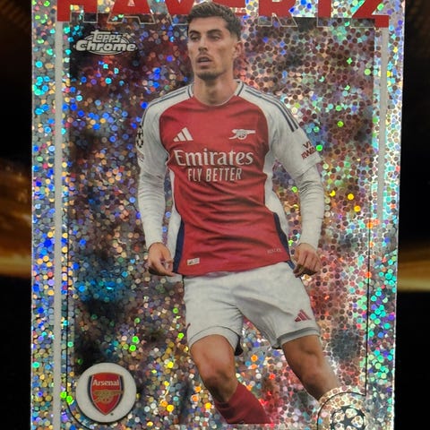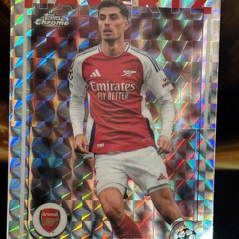 Topps Football's Finest 2021-22 Kai Havertz fotballkort med bilde av spilleren i Chelsea FC-drakt. Kortet har unike design og er en del av Champions League-utgaven.