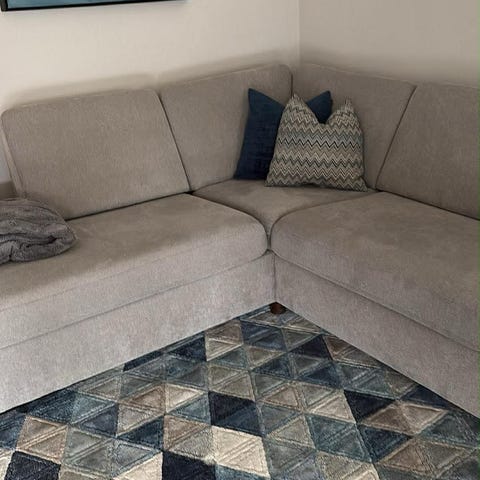Gulvteppet er brukt, så selges billig da jeg finner noen tråder som har blitt hektet ut.