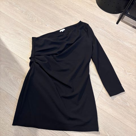 Sort kjole med pent mønster en del foran og bak. Glatt stoff i sidene som gir en fin siluett.