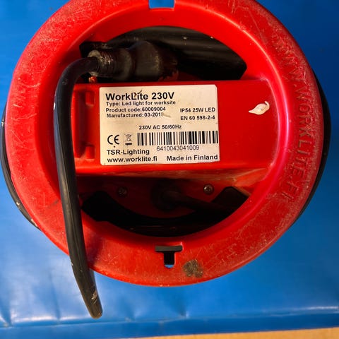 Arbeidslys (4x55w) IP54 kapslingsgrad. Arbeidslampen har en maksimal last på 3000W. 4 stykk strømuttak på baksiden.