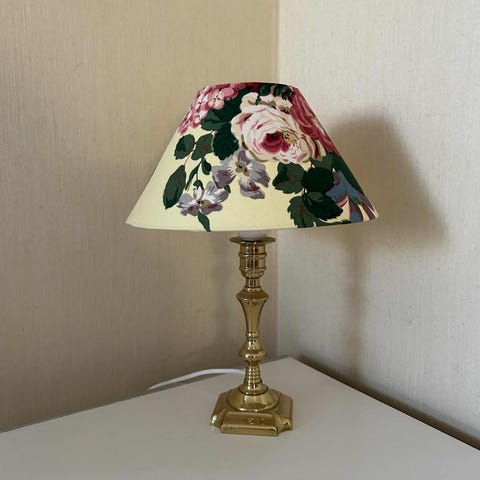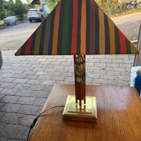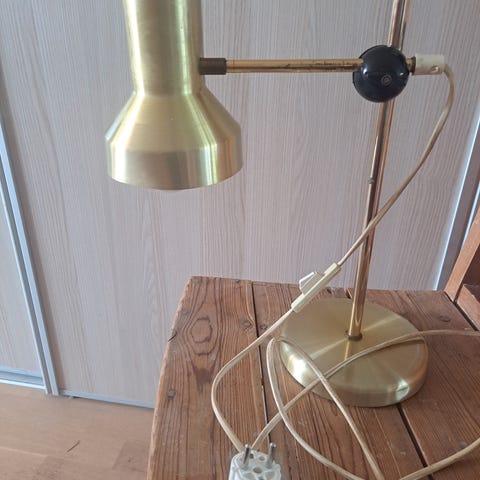 flott messing bord lampa med tre lys grønt skjerm fongere med inn Danmark se bilde breden 22 cm høyden inkludert stang ca 63 cm kun henting selges 1700