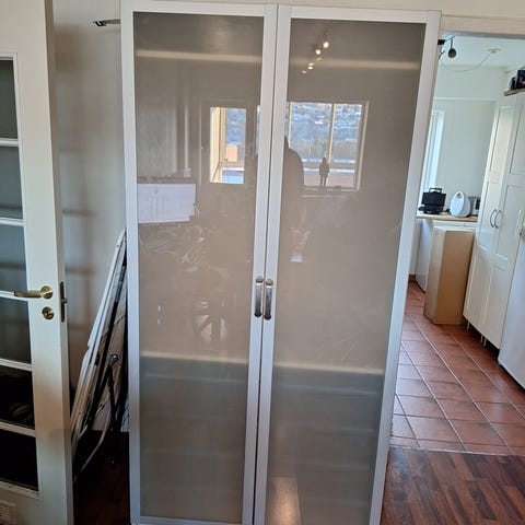 Selger et pax-skap i 75cm-bredde. Skapet har to hyller og to trådkurver inni seg, men dersom man har behov for mer/annet selges innmat for en rimelig penge på IKEA. Skapet har bare blitt brukt til å oppbevare garn og sengetøy. Har en liten skade inni på bakplata, men har ingenting å si for bruken 😊 må hentes