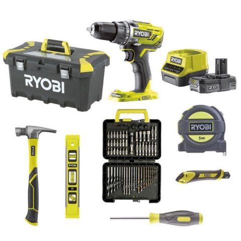 Ryobi verktøykasse med innhold