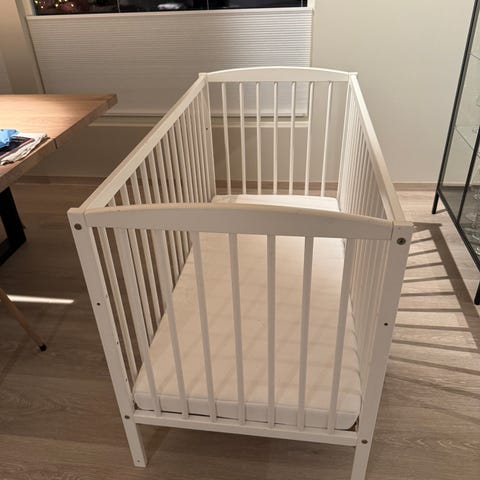 Selger Babybay Bedside crib da den har blitt for liten for barnet. Praktisk seng for å ha ved siden av din egen gjennom natten. Soveflaten kan justeres fritt ved å løsne skrue på siden og ene veggen kan justeres trinnvis. Følger med madrass og oppheng til uro/forheng.
