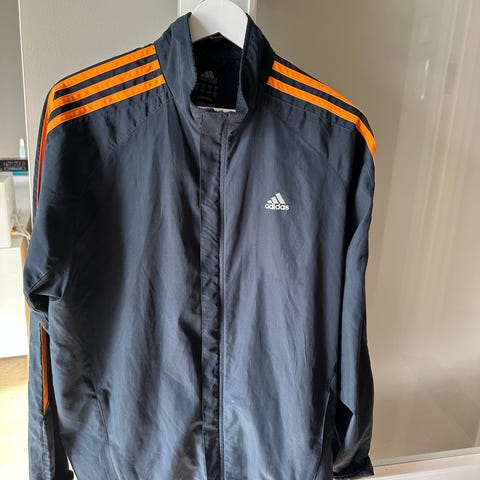 Denne skulle jeg gjerne beholdt selv, men den er blitt for liten. Treningsjakke med hette, to "jakkelommer" og en glidelåslomme på brystet.