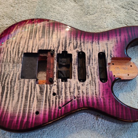 Kommer med utfresing til Floyd Rose nut , trussrod hjul med bein og fin hals. Minner veldig om Charvel sine halser på baksiden. Helt smooth.