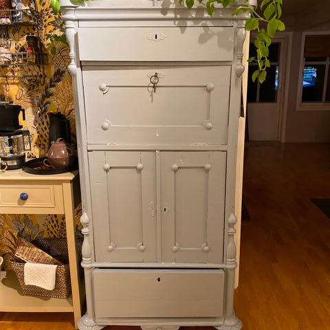 Antikk skjenk/kommode med 2 skuffer og 2 skap selges. OBS! Evt interesse må avklares innen kommende helg og møbelet må hentes på Rømåsen, Sjusjøen mellom torsdag 15. januar-mandag 19. januar.