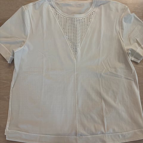 Pent brukt Lululemon cropped t-skjorte i str. 12. Vil si den tilsvarer L. Brukt 2-3 ganger, ingen merker/skader. Fargen er mest lik som på første bilde.