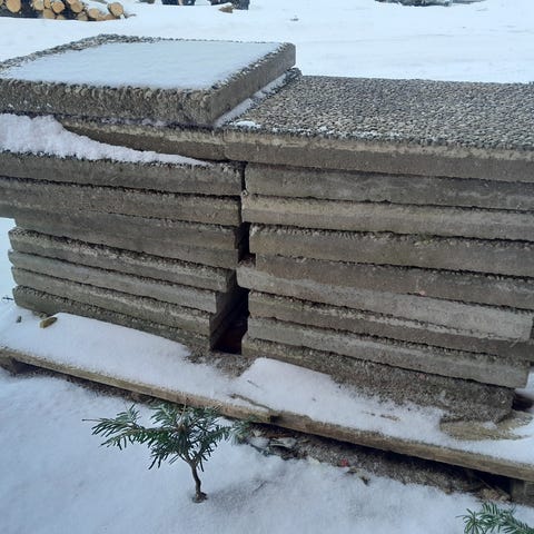 Den største steinen er ca 90cm lang. Må sannsynligvis løftes med stropper eller gripeklo. Den som henter må ta alle :)