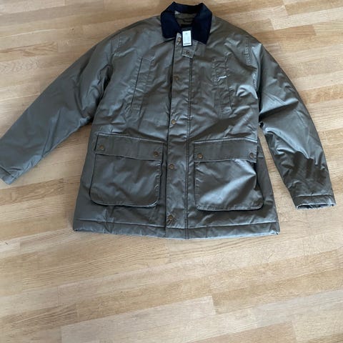 Jakken er pent og lite brukt. Str. XL. Brystmål fra armhule til armhule er 65 cm, ermelengde fra armhule og ut er 54 cm og hel lengde fra skulder og ned er 72 cm. 100% polyester.