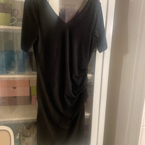 Pent brukt velour kjole, str L med flotte sølvdetaljer. Kan sendes med PostNord, kr 69 inkl sporing.