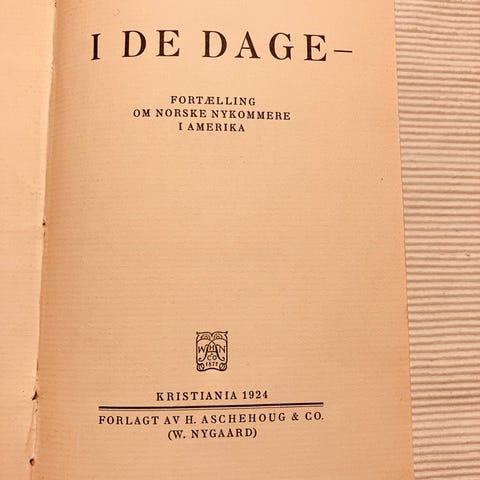 Bok av Ole E. Rølvaag. I De Dage. 1975 (1924)