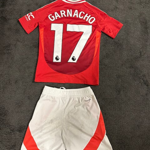 Selger en lite brukt manchester united drakt str. 9-10 år 134~140