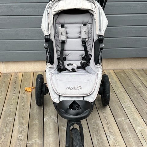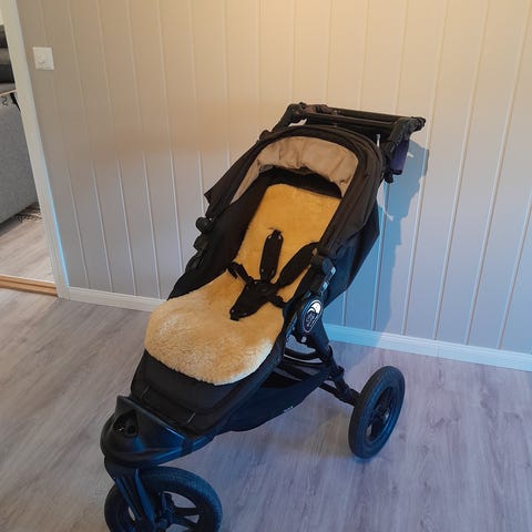 Kjøpt ny på Jollyroom for ca 8 år siden, brukt et par år, og stått på loftet siden. God å trille, og enkel i bruk.