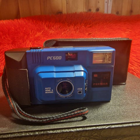 Polaroid Supercolor 670AF instantkamera i svart farge. Kameraet har autofokus og bruker Polaroid-film for umiddelbar fremkalling av bilder. Modellen inkluderer en avtakbar skulderrem og original brukerhåndbok.